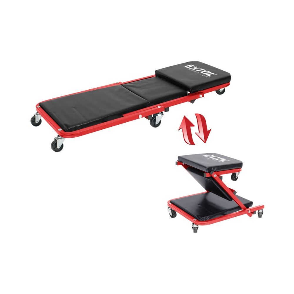 Az Extol Premium 2-funkciós szerelőszék egy innovatív, sokoldalú munkavégzési segédeszköz, amely tökéletes megoldást nyújt autók alatti és körüli munkavégzéshez. Ez a gurulós, 150 kg teherbírású eszköz átalakítható ülőhelyből fekvőhellyé, megkönnyítve a különböző szögekben történő munkavégzést.
