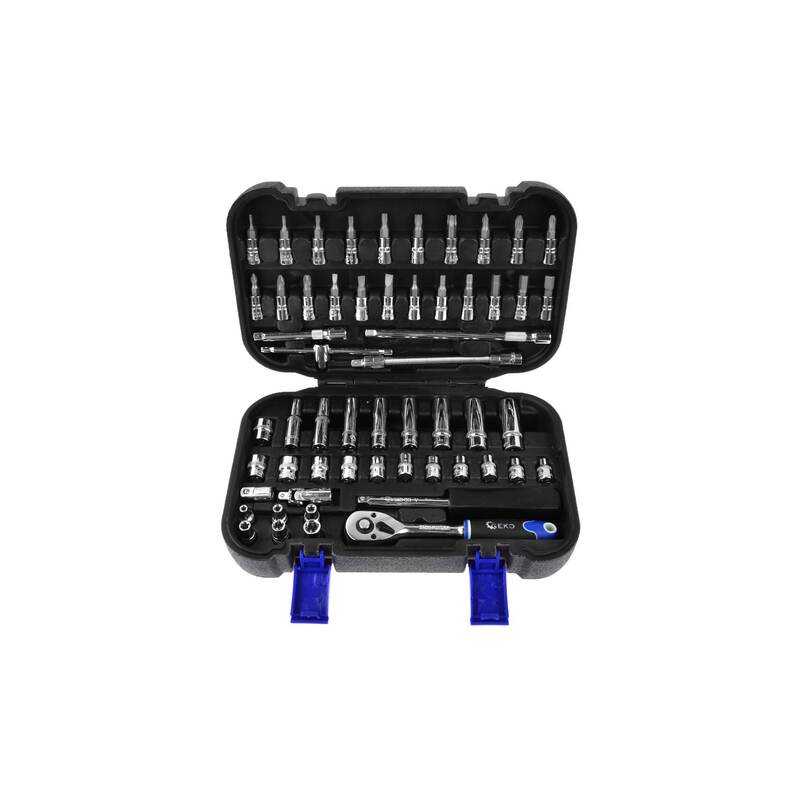 A Geko 56 részes dugókulcs készlet kiváló minőségű szerszámkollekció, amely átfogó megoldást nyújt a legkülönbözőbb csavarozási feladatokhoz. A készlet gazdag felszereltsége és precíz kivitelezése mind professzionális, mind hobbi felhasználók igényeit kielégíti.