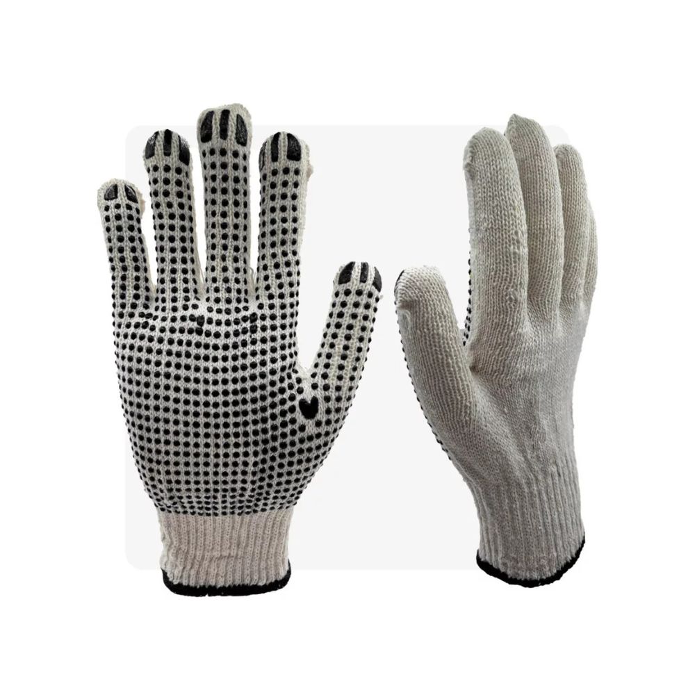 A pöttyözött fekete tenyerű kötött cérna munkavédelmi kesztyű egy sokoldalú, praktikus védőkesztyű, amely tökéletes megoldást nyújt különböző könnyebb és közepes fizikai munkákhoz. Ez a fekete pöttyözött tenyérrel ellátott kötött kesztyű jó fogást és alapvető kézvédelmet biztosít.