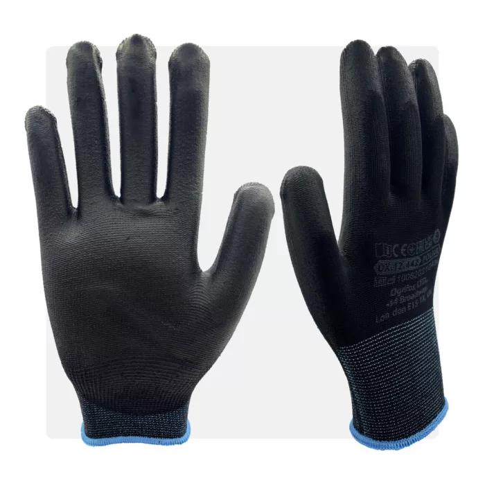 PU mártott fekete munkavédelmi kesztyű 12pár=Csomag