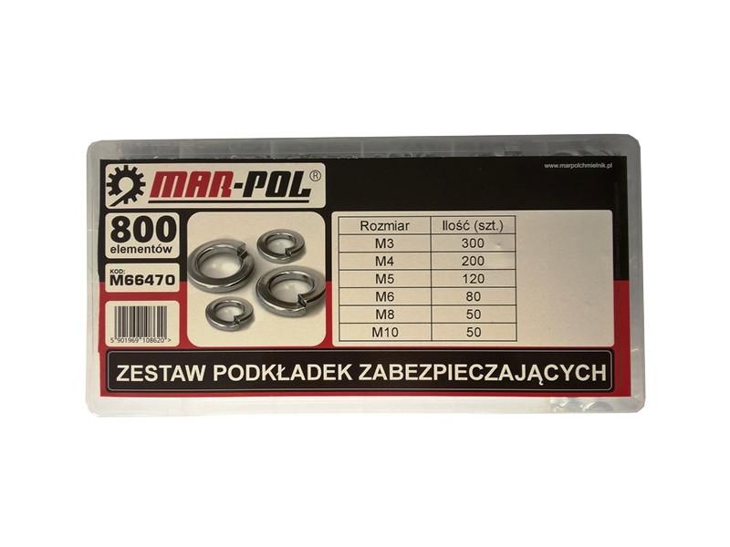 A Mar-Pol Zár alátétek klt. 800 db-os egy kiemelkedően gazdag, professzionális minőségű alátétkészlet, amely speciálisan a csavarkötések lazulásának megakadályozására lett kifejlesztve. A 800 darabos készlet különböző típusú és méretű zár alátéteket tartalmaz, biztosítva a tökéletes megoldást minden rögzítési feladathoz, ahol a vibráció vagy a dinamikus terhelés miatt fontos a csavarkötések biztosítása.